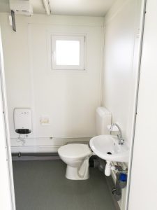 2. Zuhany és wc konténer: 2 wc kabin, 2 pissoir, 2 zuhanykabin, 150 literes bojler